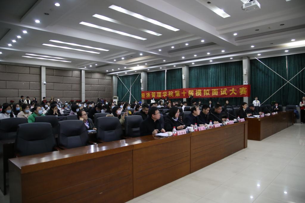 大赛历时一个多月,经过初赛复赛,最终从37名参赛者中选出10名进入决赛。赛事分自我介绍、压力面试和评委提问3个环节,考察各位选手的基本素质、反应能力、表达能力。经过1个半小时的角逐,最终,孙冰(会计系)、王姝婷(经济系)荣获一等奖,卢一菲(文法系)等3人荣获二等奖,姚佳雨(信息系)等5人荣获三等奖。比赛过程中,观摩的学生代表们认真聆听,从中汲取经验。
