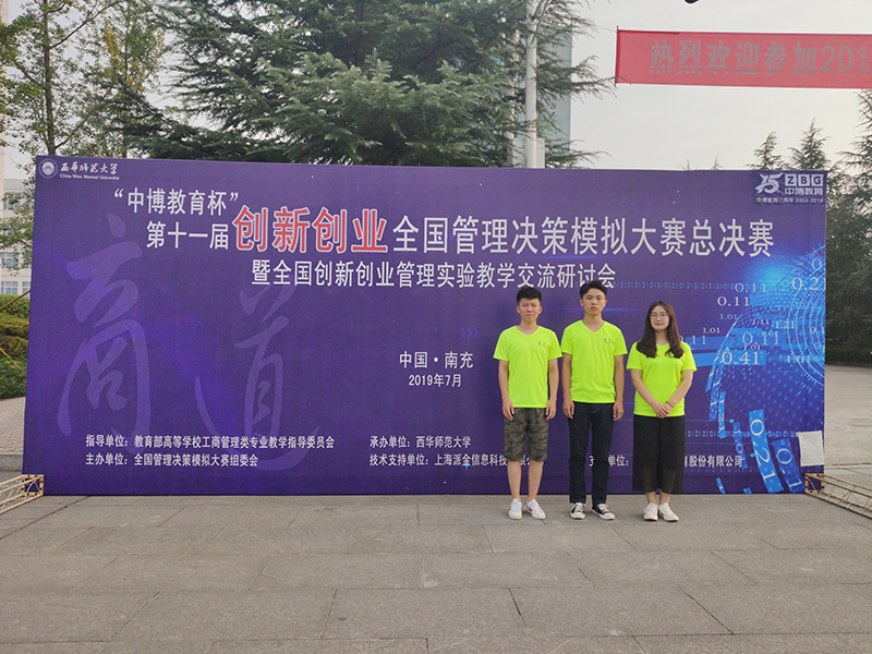 721日至23日,2019“创新创业全国管理决策模拟大赛总决赛在四川南充西华师范大学(华凤校区)举行。taptap点点派出由2017级工商管理1班赵鹏、2017级市场营销1班宁艳朵和市场营销2班任广东组成的明日之星代表队参加了本次比赛。通过三位同学的不懈努力,一路过关斩将,脱颖而出,以行业第三的好成绩荣获全国总决赛一等奖。