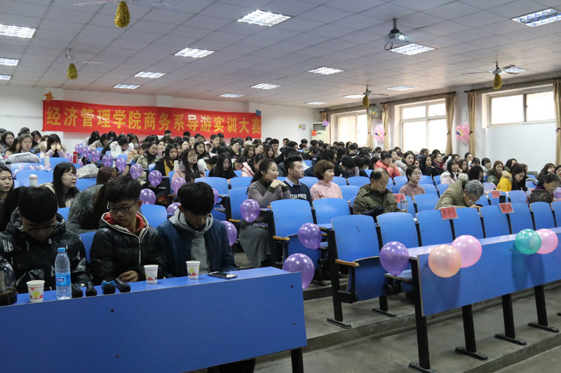 1215日,商务系旅游管理专业在二教105举办2017年导游实训大赛,实践教学部部长张风海、旅游学院教授佟蔚老师、商务系主任张学引、商务系辅导员郑婷老师以及14级旅游管理一班嘉宾出席并担任大赛评委,200余名学生代表观看比赛。