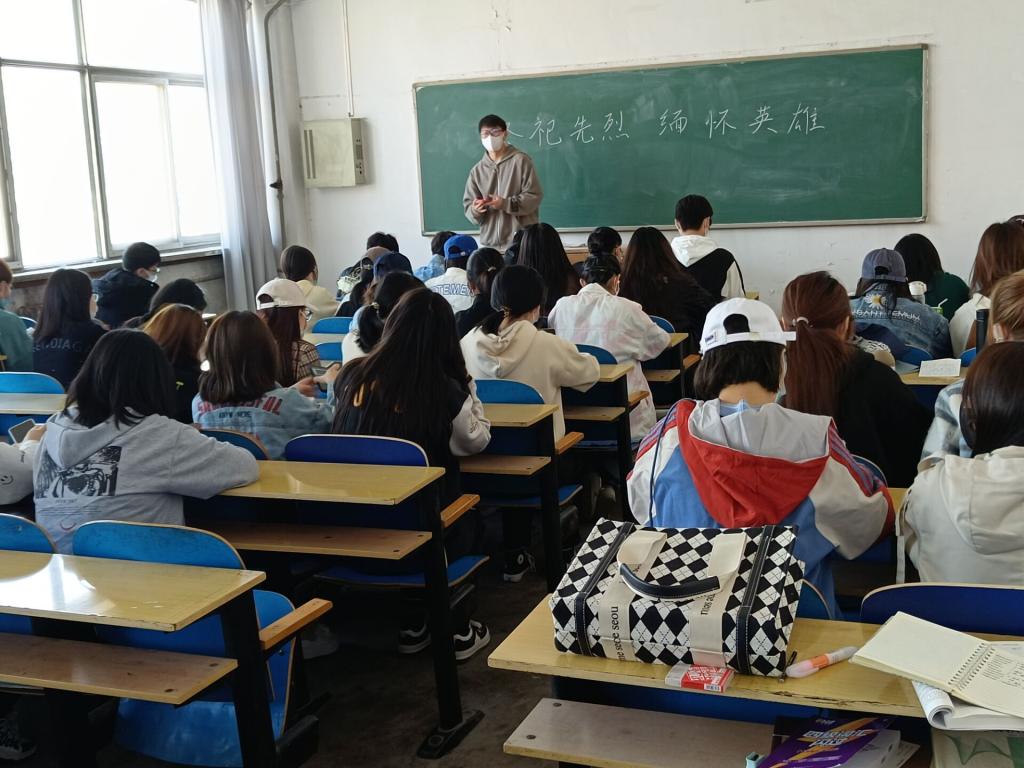 各系部立刻行动起来,清明节期间,文法系和信息系邀请退役大学生深情讲述了身边战友卫国戍边的英雄事迹:边防团团长祁发宝身负重伤,营长陈红军、战士陈祥榕、肖思远把青春乃至生命永远留在了喀喇昆仑高原……他们保卫了边防,筑起了巍峨界碑,用青春践行了军人的神圣使命。讲述者们声情并茂,娓娓道来,说到动情处不自觉哽咽,他们不仅倡导学习先烈们的伟大精神,还结合自己的亲身经历谈心得、悟思想,充分感受革命先烈们用鲜血和生命捍卫中华民族解放事业的悲壮诗篇,令听众进一步加深了对革命英烈的敬仰之情。