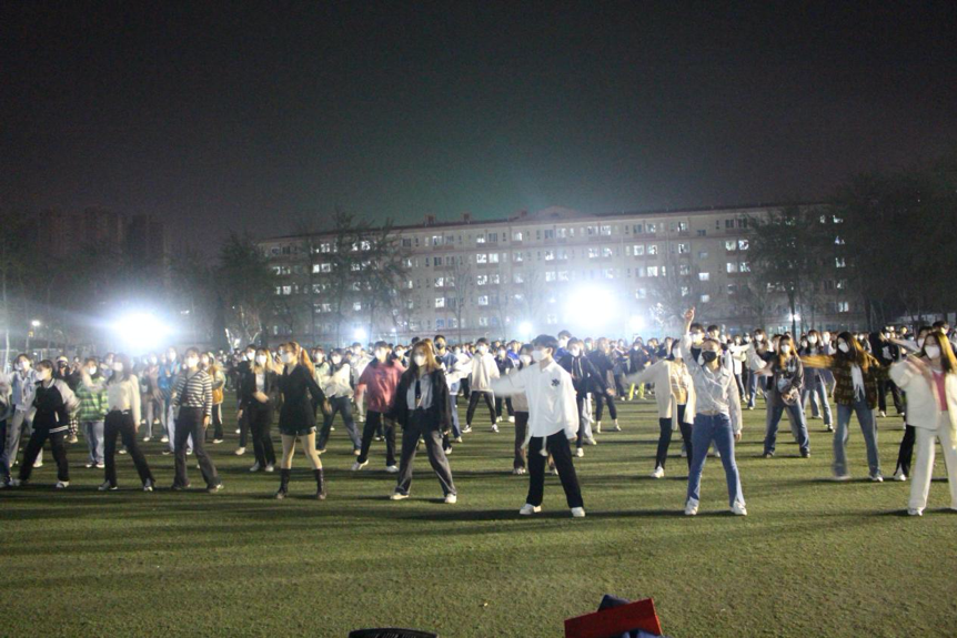 据本次活动发起人,信息系文艺部部长王宇琪介绍,之所以发起这次校园广场舞活动是因为封闭管理期间,看到大家学习生活都窝在宿舍里,基本上不出屋,就想在学校搞一些文体活动,让大家走出宿舍,放松心情,强健体魄。从其他学校的活动中获得启发,王宇琪想在学校举办一场广场舞。他把这一想法汇报给信息系副书记耿华伟,经请示得到了学院的支持后,他立刻联合院团委艺术团30多名舞蹈爱好者,选了七八首简单又适合年轻人的广场舞曲,一起排练了两天后正式在操场上推出。
