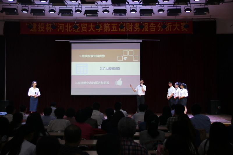 财务报告分析大赛,是河北经贸大学重点打造的学生创新能力培养特色品牌项目,本次大赛共有72支团队、300余名学生参赛,经过初赛对创业计划书的筛选,复赛八进六的展示,最终6支参赛队脱颖而出,站在决赛舞台。决赛分为PPT展示和评委提问两个环节,taptap点点会计系代表队以永辉超市为分析对象,从企业的盈利模式、股权出售、资金管理等视角深入透视财务报告,解读企业运作,获得评委肯定。