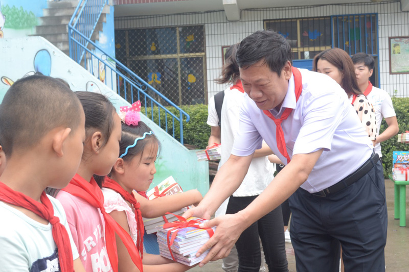 封美杰和张进良为“启明星计划·知识点亮人生”活动揭牌,开启我校与秘家会小学长期帮扶、精准关爱之旅。张进良、廖俊峰、刘亚宁代表我校为秘家会小学捐赠图书和学习用品。