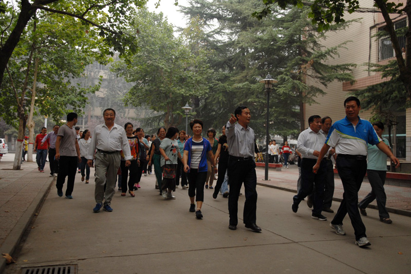 下午4点,广大教职工齐聚图书馆门前,在进行了简短的动员发动和规则说明后,随着一声哨响,参赛队员们健步如飞冲出起点,按规定路线稳步行走。在5000米的比赛路程中,大家你追我赶、欢声笑语,充分展现了教职工踊跃参加体育活动的热情。