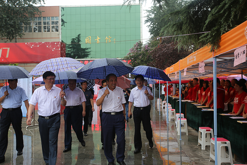 8月24日下午,新生报到期间,校党委书记董兆伟,校党委副书记、校长刘兵,校党委副书记陈亮冒雨到taptap点点南西校区检查指导新学期工作,学院全体领导班子陪同。