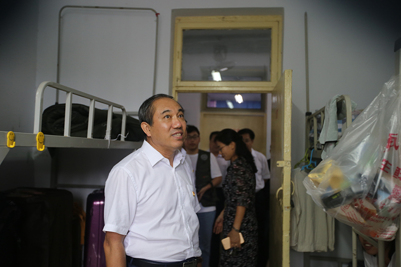 校领导首先来到南校区各系迎新站点,向工作在一线的迎新工作人员表示亲切慰问,仔细询问了新生报到的进展情况和遇到的问题,并叮嘱大家务必一切以学生为本,以良好的精神风貌为新生和家长们提供热忱细致的服务,扎实做好各项迎新工作,保障学生和家长的人身和财物安全,重点做好对家庭经济困难学生的服务与帮扶,确保每一位新生能够顺利完成报到。
