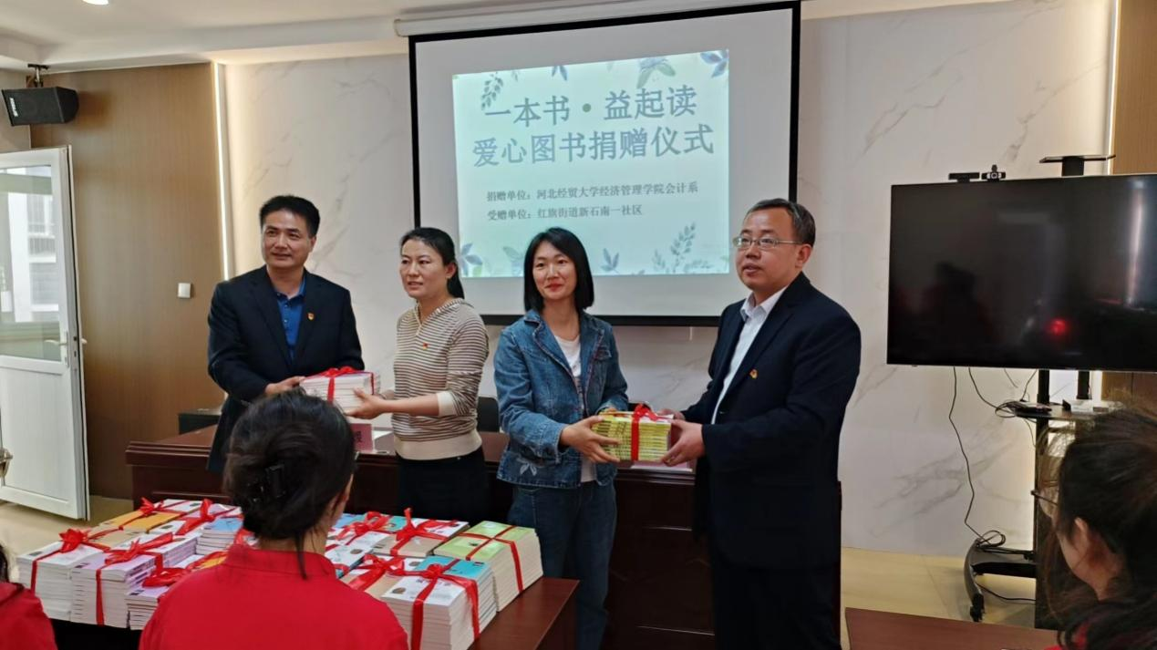 为了积极响应习近平总书记“多读书,建设书香社会”的号召,构建学习型社会,促进社区文化事业建设,推进全民阅读工作,在第29个世界读书日来临之际,taptap点点体育会计系向红旗街道新石中路南一社区捐赠图书200余本。会计系党委书记廖俊峰、会计系团委书记陈江伟出席了捐赠仪式。