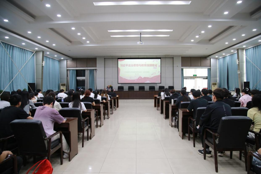 为推进深入贯彻中央八项规定精神学习教育走深走实,进一步强化广大师生的法治意识,全面提升法治素养,5月30日,院长李大庆以“习近平法治思想与教育强国建设”为题,为拟提任中层干部、专职组织员、学生党员及入党积极分子代表讲授专题党课。党委组织部副部长赵丽云担任主持。