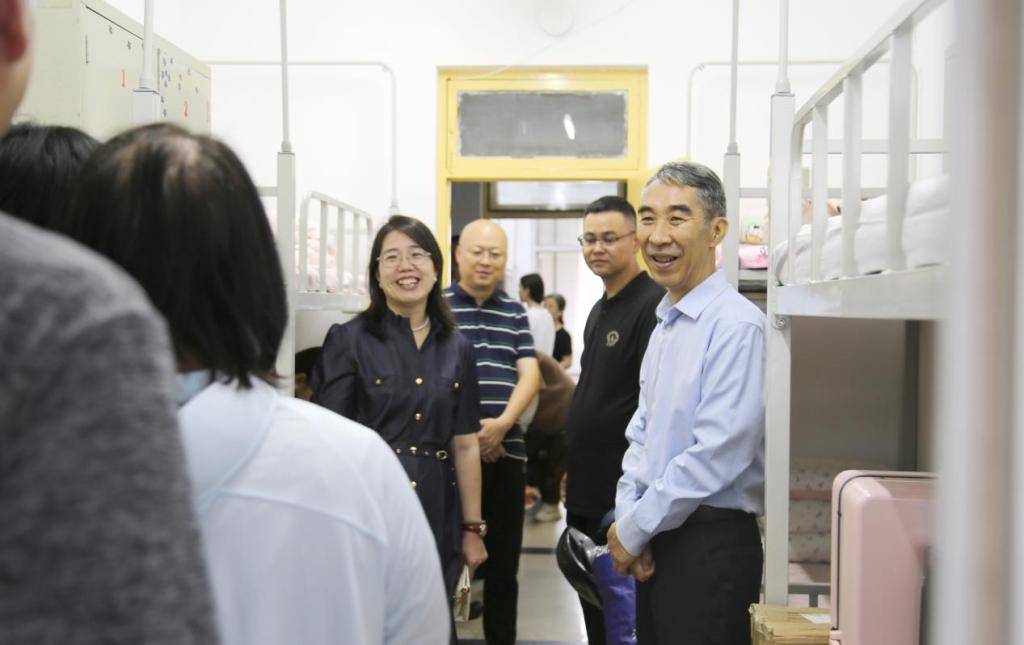 在9号楼学生公寓,高波仔细查看了学生的居住环境,并与新生家长亲切交谈,询问他们对大学校园的初步印象,叮嘱学生要注意用电安全,遵守宿舍管理规定。随后,一行人来到学生食堂,到各档口查看了饭菜的花色品种,询问正在用餐的新生及家长对饭菜的满意度。他强调,后勤部门要严格执行卫生标准,加强监督,提升食品安全水平,满足师生多元化用餐需求,为师生提供更加优质的餐饮服务。