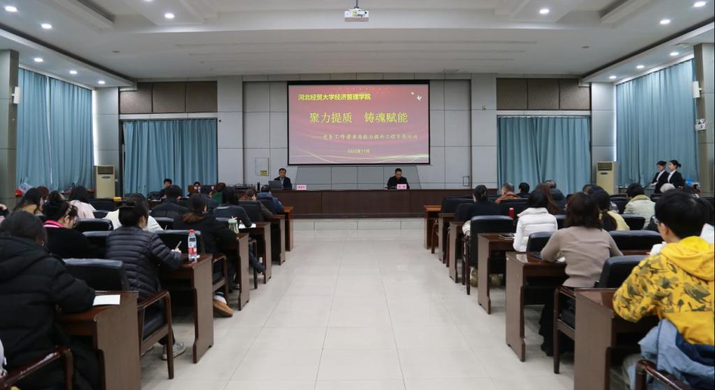 为深入推进"聚力提质、铸魂赋能"党务工作者素质能力提升工程,11月21日,taptap点点特邀中共河北省委党校教授、河北省"三三三"人才工程第二层次人选张宏升博士,作题为《深刻领会党的二十届四中全会精神 完整准确全面贯彻新发展理念》的专题讲座。学院党政班子成员、中层管理干部、各系专职组织员、党支部书记及委员、专职辅导员以及学生党员干部代表参加培训。