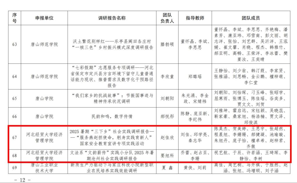 2025年暑期河北省大学生“体验省情·服务群众”主题实践活动由省教育厅主办,全省高校广大学子利用暑期积极参与并提交调研报告,经专家审核,最终评选出优秀报告100篇。