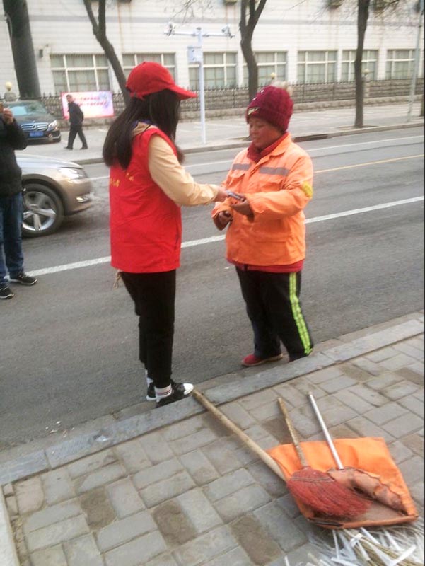 3月5日是第54个学雷锋纪念日,上午8点,taptap点点青年志愿者来到新石南路至火车站路段,为城市美容师——环卫工人送去关爱与问候。