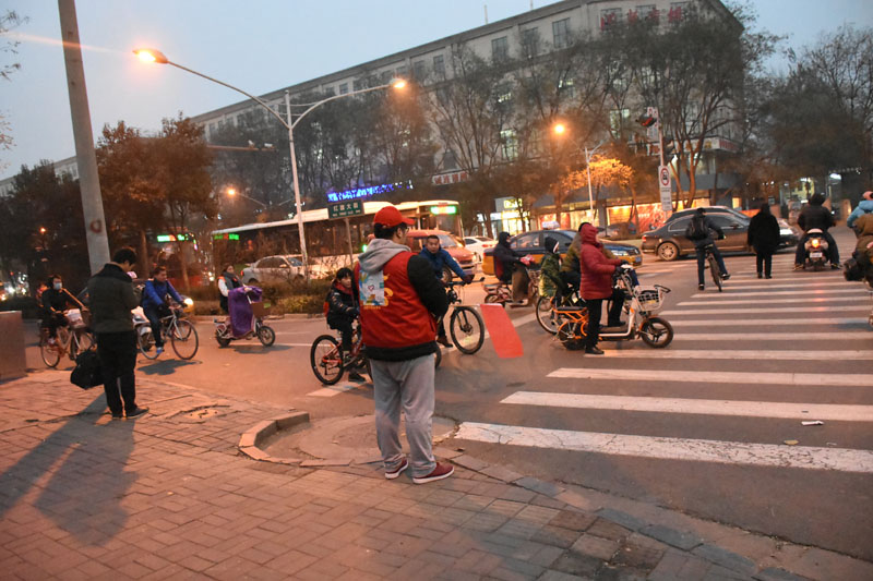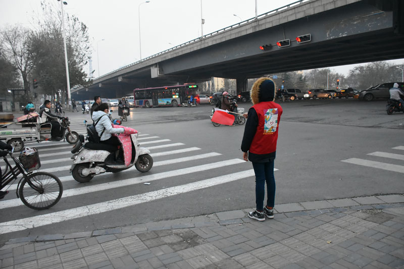 2016年11月7日到12月6日,在桥西区交警大队的支持和指导下,我系青年志愿者在早中晚三个时间段,分别到红旗大街新石南路、红旗大街南二环等5个路口协管斑马线,对不文明交通行为进行提示和劝导。红灯亮起,红旗升,绿灯亮起,红旗落,红旗上下挥动之间,志愿者传递出了安全出行,文明礼让的正能量,得到市民的认同与赞赏。