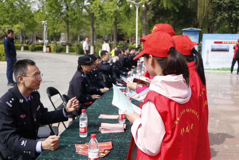 全体人员到达公园后,各系分队进行了参观,道路两旁摆放着关于网络安全、食品安全、环境安全等多种国家安全知识的展示牌,省法院、省检察院、省公安厅、省国家安全厅、省司法厅等单位工作人员通过发放宣传资料、开展法律咨询等多种形式进行向大家普及相关法律知识,解答群众疑惑。市安全局的工作人员向志愿者们介绍了国家安全知识,并希望借此提高青年学生的安全防范意识。志愿者们认真观看展板,领取阅读宣传资料。安全局同志的讲解,让同学们进一步认识到国家安全和自身的关系,以及依法维护国家安全的重要性。