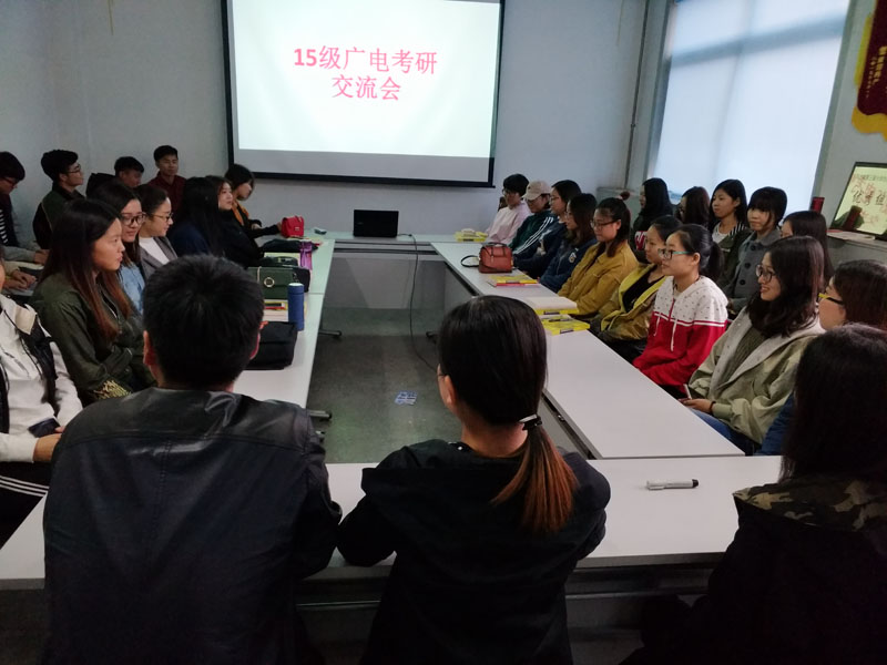 为了进一步提高班级学生的考研热情,了解更多考研信息, 掌握相关技巧,10月13日下午,文法系15级广电班在行政楼413举办考研经验交流会。交流会邀请taptap点点2011级广电、2013级广电考研成绩优异、经验丰富的孙志军、张若云和赵愿与同学们交流,交流会由辅导员秦晓燕老师主持。