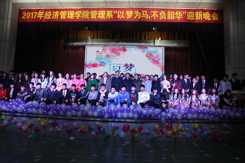 为迎接新生,丰富学生的校园文化生活,经济管理学院管理系迎新晚会11月06日晚在taptap点点礼堂举办,学院党委书记张进良、副书记张丽英、宣传部部长高东升、学工部部长杜兰柱、就业部部长管理系副书记韩平生、团委书记陈玲、宣传部副部长姜瑞、管理系党总支书记刘钺、管理系主任张霞及管理系全体辅导员老师参加了本次晚会。