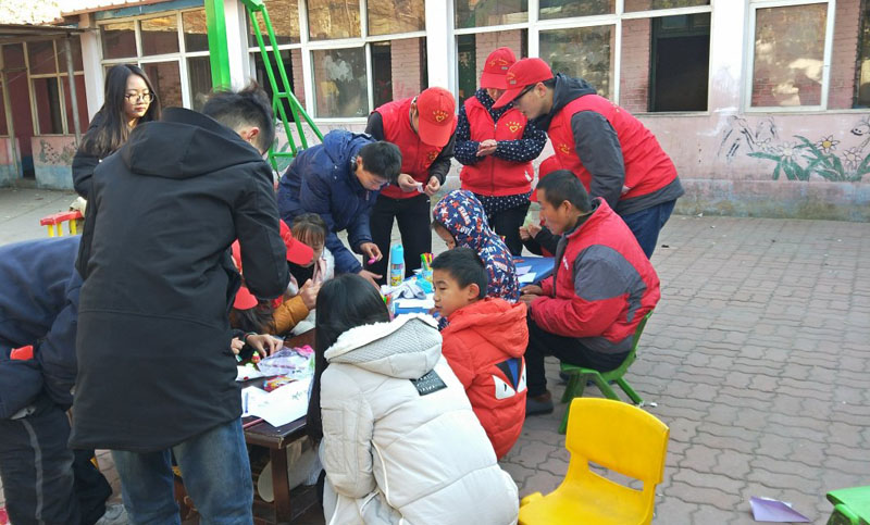 在学校,志愿者分成三组,陪孩子们叠纸鹤、扔飞机、画画、写字、捏橡皮泥等。志愿者还带领孩子们玩跳格子和老鹰捉小鸡等游戏,校园里不时传来欢声笑语,志愿者与孩子们度过了快乐的一天,并为他们带去了温暖与关怀。