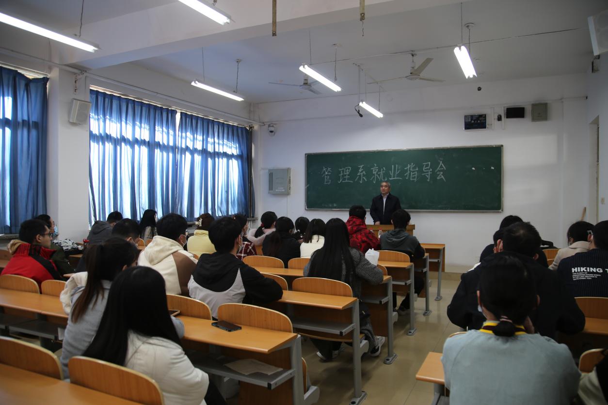 为了更好地帮助毕业生了解行业发展趋势,做好求职选择,3月3日下午,管理系召开就业指导会,邀请河北经贸大学十佳就业工作者、旅游学院就业负责人张建林做专题辅导。讲座由辅导员郑廷主持,部分2019级管理系学生学生参加。