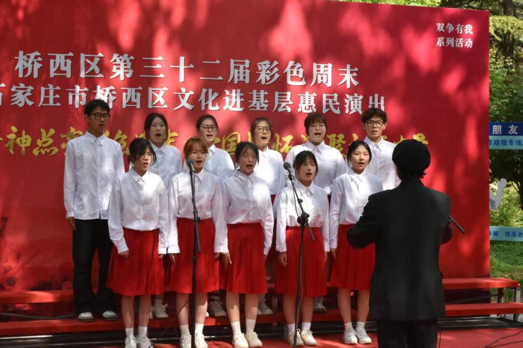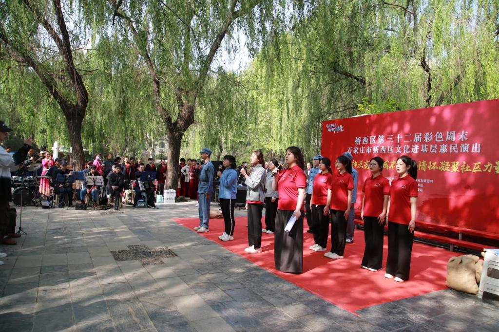 今年是中国人民抗日战争暨世界反法西斯战争胜利80周年,为了铭记党的奋斗历程,赓续红色血脉,传承抗战精神,管理系与红旗街道新石南一社区以及辖区老年艺术团:河北爱之声艺术团、常青藤志愿文化宣传队携手,在石刻园举办以“红色精神点亮彩色周末 爱国情怀凝聚社区力量”为主题的文化惠民演出。