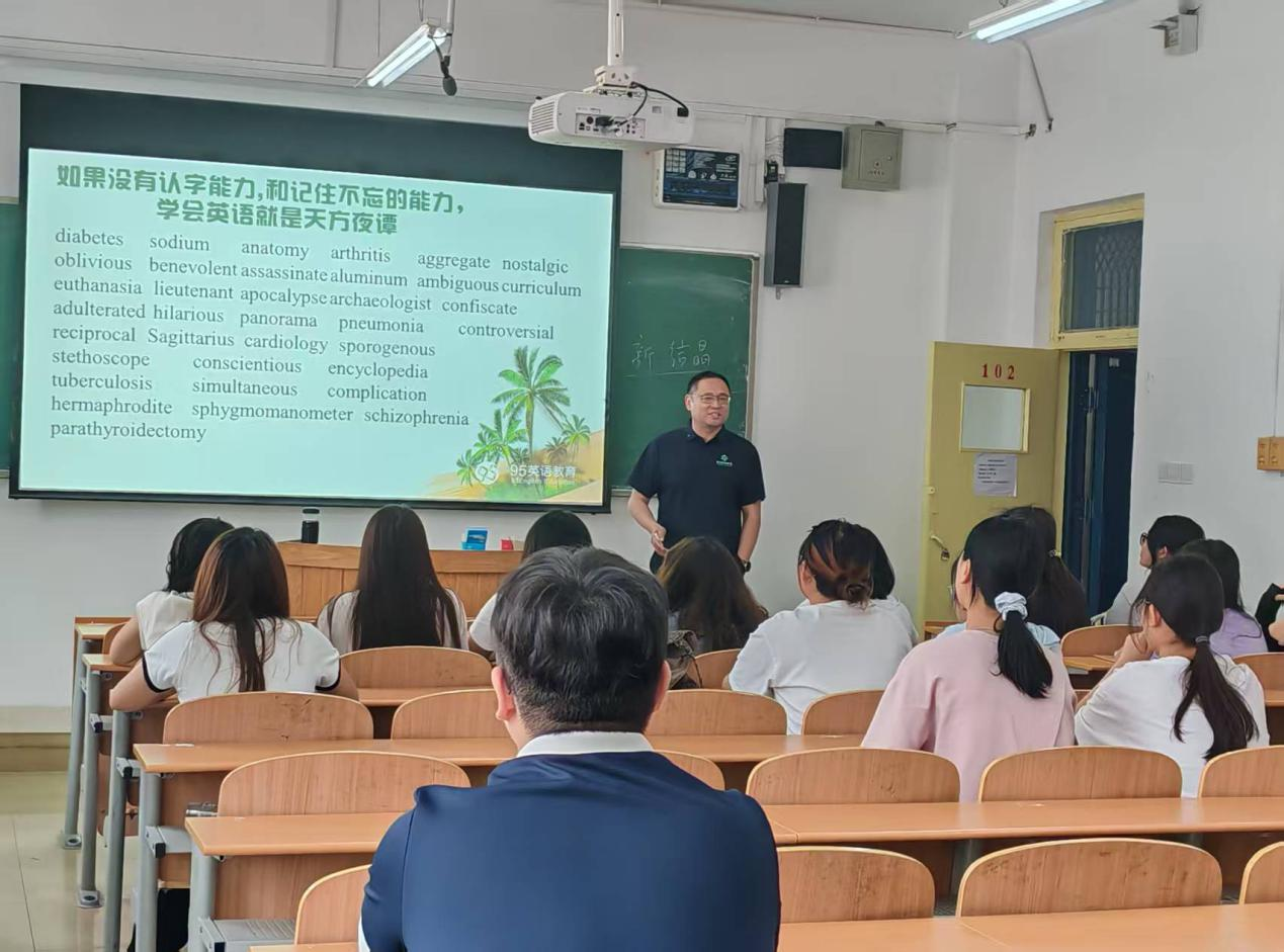 95教育集团创始人苏建全老师受邀为同学们讲授特色英语学习体系,并重点围绕英语语法、英语单词拼写和记忆等学习方法做了详细的解读。讲座中,苏建全以丰富的数据资源向同学们介绍了英语教学前沿理念,提醒同学们要充分认识到英语学习在就业创业实践活动中的重要性,并就大学生职业生涯规划和就业创业实际给出可行性建议,希望同学们踏准节奏,找到满意的工作。