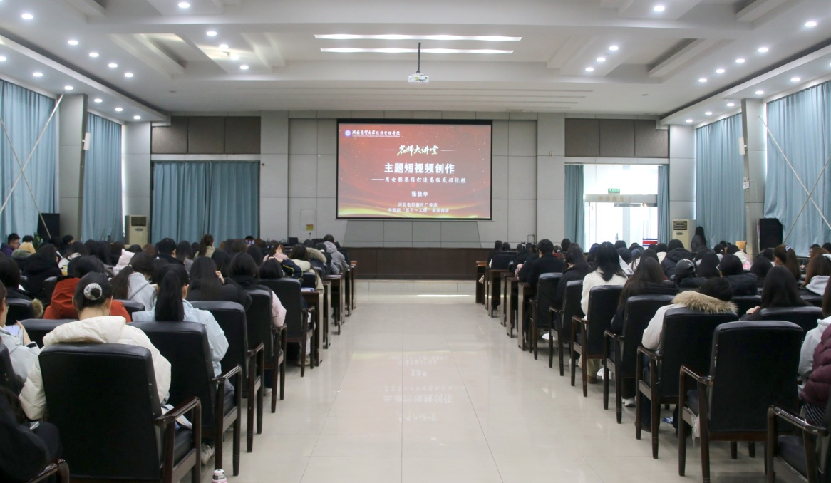 11月25日上午,taptap点点“名师大讲堂”特邀北京电影学院摄影系硕士、资深电影导演兼摄影师张佳辛为学生作题为《主题短视频创作——用电影思维打造高级感短视频》的学术讲座。讲座由院宣传部副部长郑廷主持,我系新闻广电专业200余名学生参加。