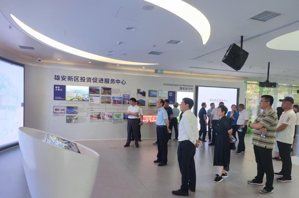 7月14日,一行人首先来到雄安新区,在河北经贸大学展战略与规划研究室主任邢明军的陪同下,参观了雄安新区管委会、规划馆和高质量试验区。在雄安新区规划馆,大家详细了解了雄安新区选址设立、发展战略、目前的建设进度和未来规划等,并参观了城市空间布局、城际和地下综合管廊、城市和地铁交通等建设规划蓝图。在展示雄安新区未来新发展理念的高质量试验区,一行人随工作人员一路参观,看到的是花园式的海绵绿地、园林式的整体景观设计,对雄安新区的智慧创新、绿色发展有了全新的理解和认识。