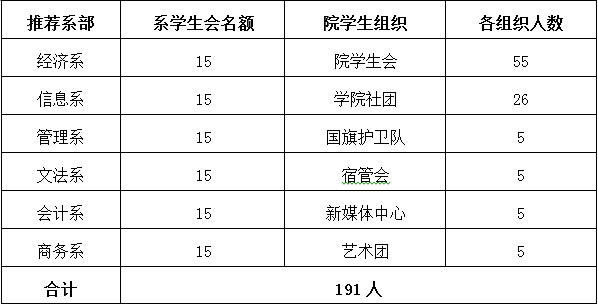 各学生组织干部(包括院、系学生会、国旗护卫队、宿管会、学院社团、新媒体中心、艺术团)。