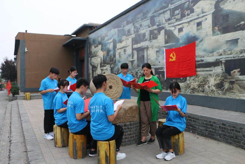 在抗日地道展览馆,小分队队长张仕昆化身讲解员,声情并茂的为大家讲述那段军民齐抗战的峥嵘岁月。面对那些振奋人心的图片,珍贵稀缺的文献、包含热血的故事,队员们或眼含泪花,或目光坚定,或心潮澎湃,或斗志昂扬,在这堂红色基地参访课中,青年的抱负与革命先辈的精神紧紧相融。随后,队员们发起一场热烈的革命诗词诵读课,“把酒酹滔滔,心潮逐浪高”,“唤起工农千百万,同心干,不周山下红旗乱”,“今日长缨在手,何时缚住苍龙”,“太平世界,环球同此凉热”......一首首饱含豪情壮志的革命诗词在地道遗址的上空回荡,这是青年一代向先辈们深情的致敬!