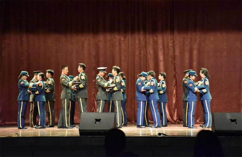 活动现场,蔡杭州和张丽英分别为2017级国护队队干颁发了聘任证书。第十届国旗护卫队队长郑敬禄做了队内工作汇报。与会人员还一同观看了各兄弟院校送来的祝福视频和队员们精心排演的训练情景剧。