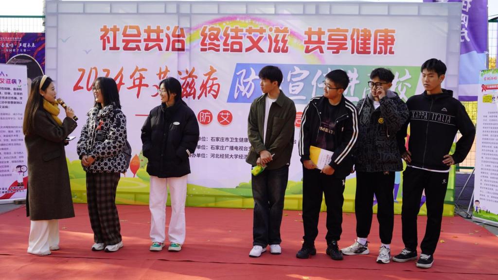为贯彻落实2024年艾滋病防治宣传进高校工作的决策部署,提高大学生对艾滋病的认识和预防意识,11月20日中午,taptap点点联合石家庄市卫健委、石家庄广播电视台在操场甬道举办艾滋病防治宣传活动。本次活动以“社会共治、终结艾滋、共享健康”为主题,旨在通过多元化、创新性的宣传方式,推进艾滋病防治宣传工作。